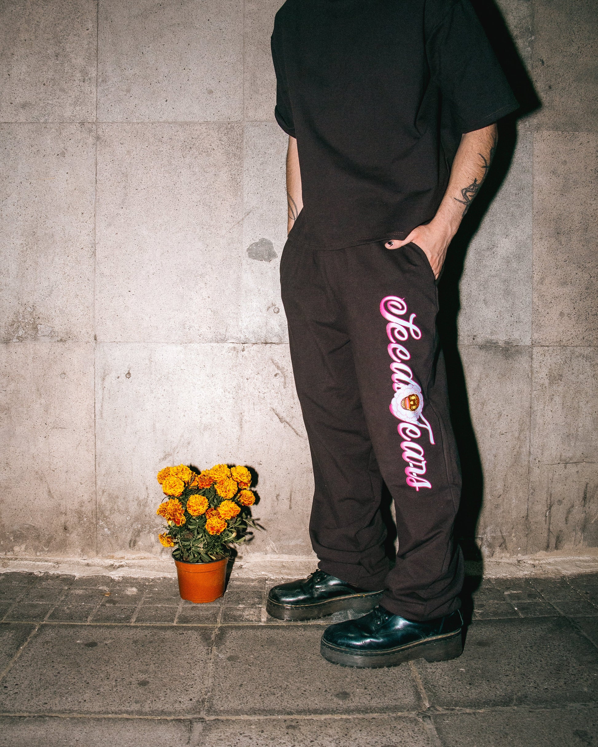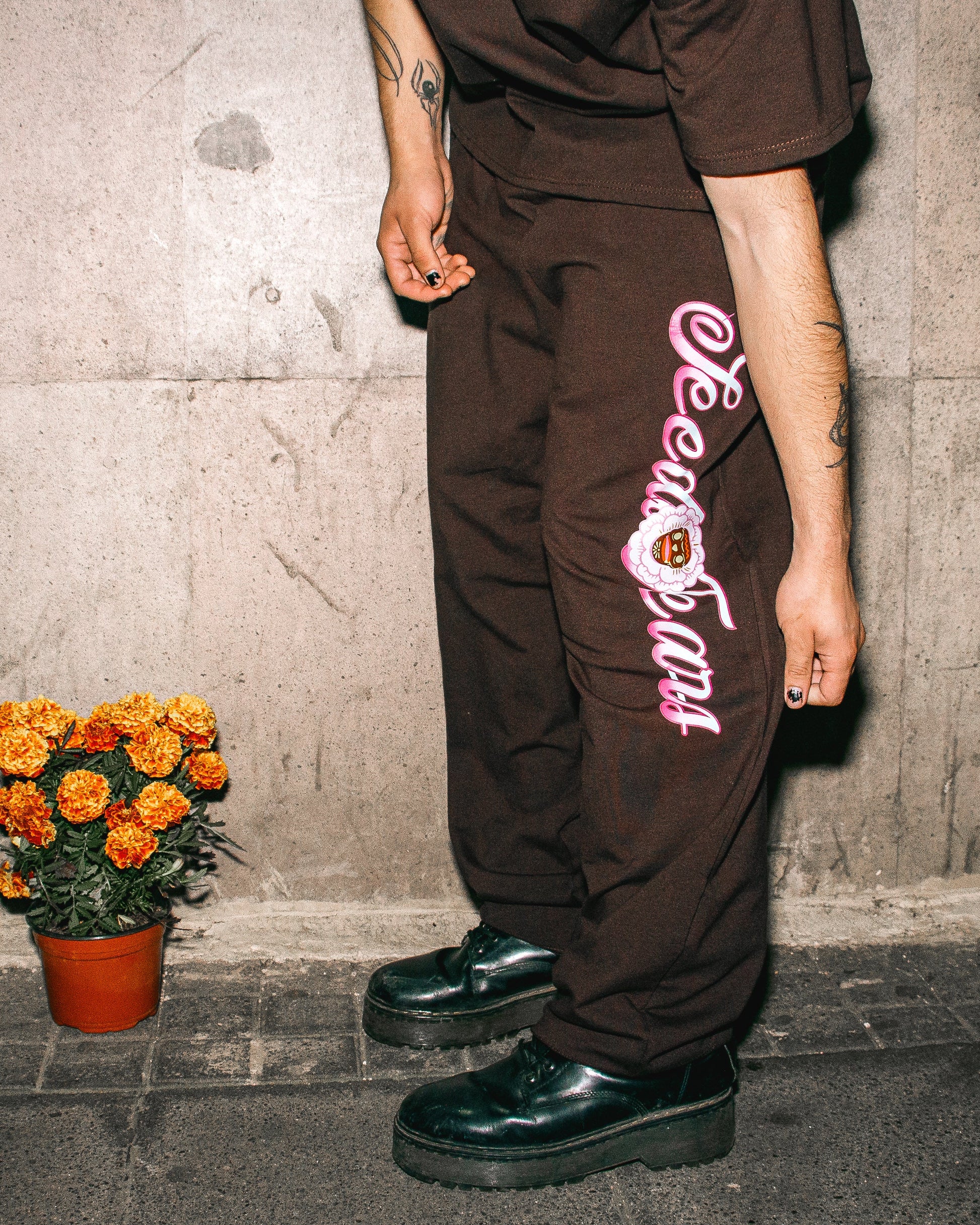 Confeccionado en french terry 100% algodón, este pants combina suavidad estructurada y caída natural. Su tono café profundo contrasta con el cordón beige y el arte lateral “Seedi Tears”, aportando carácter y equilibrio visual. Una pieza que abraza la comodidad con precisión técnica y estética urbana refinada.
